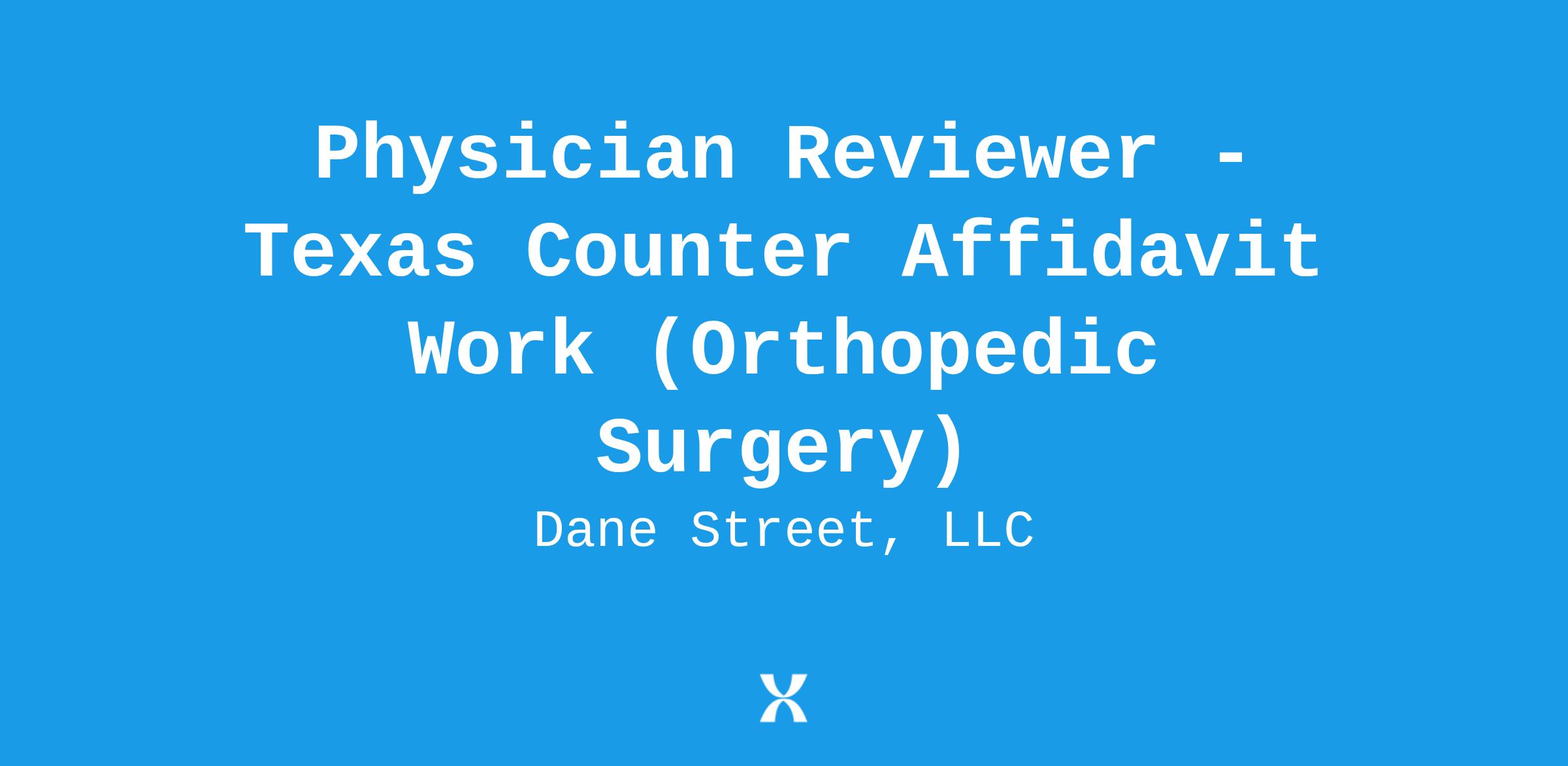 Candidates must be an Orthopedic Surgeon in the Dallas or Houston area and hold a TX License, with testimony/deposition/counter affidavit work experience. Candidates must also have access to a TX notary or be readily available for online notaries.